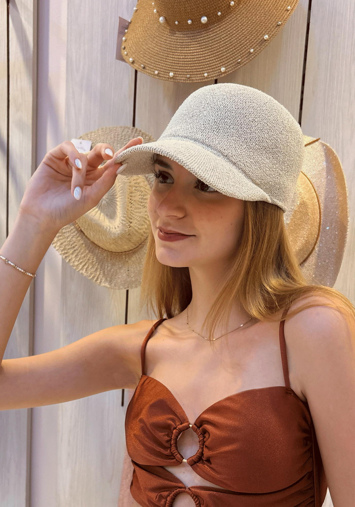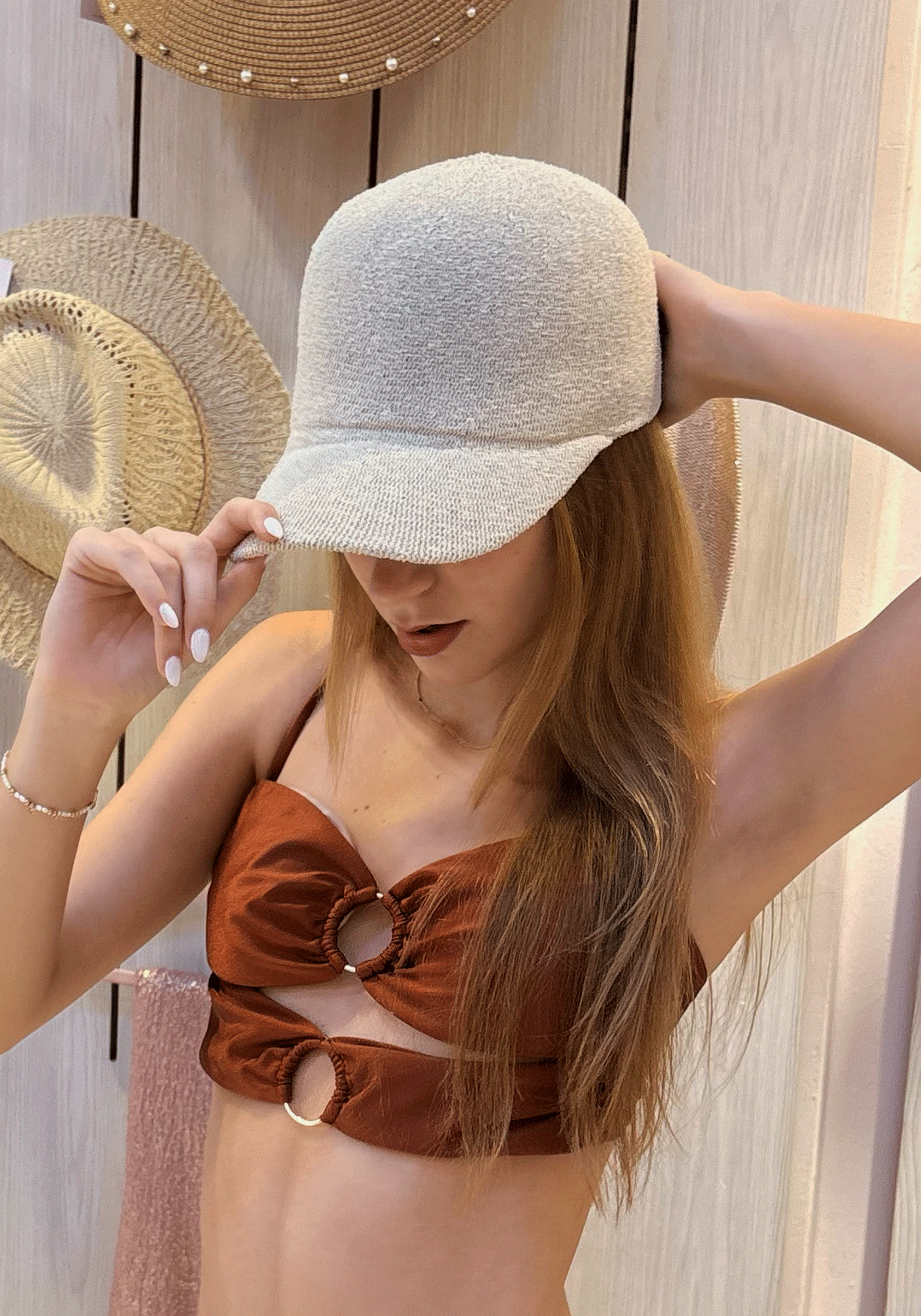 El gorro Beige Cup está confeccionado en fibra natural de tono beige suave, con una textura delicada. Su diseño tipo cup con visera corta brinda un toque moderno, ideal para proteger del sol sin perder el estilo.